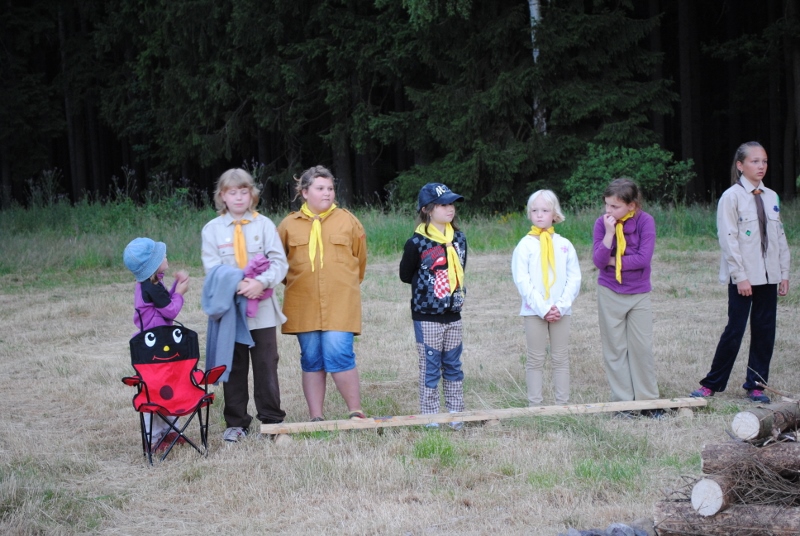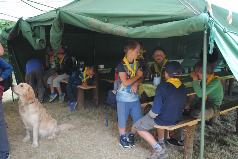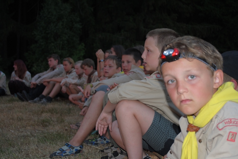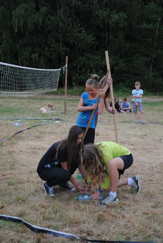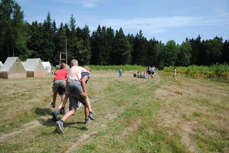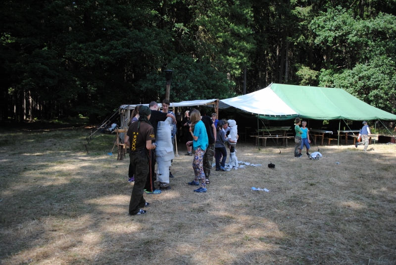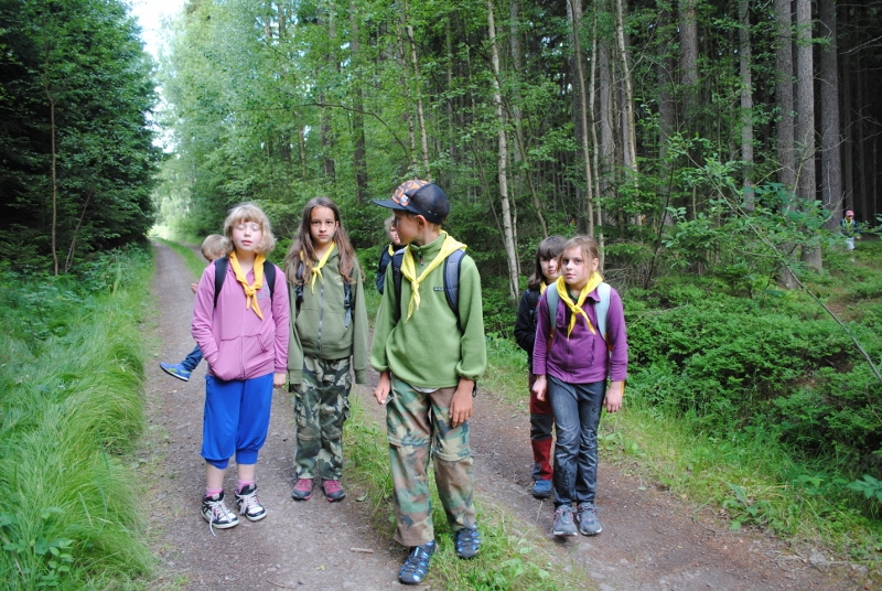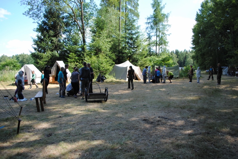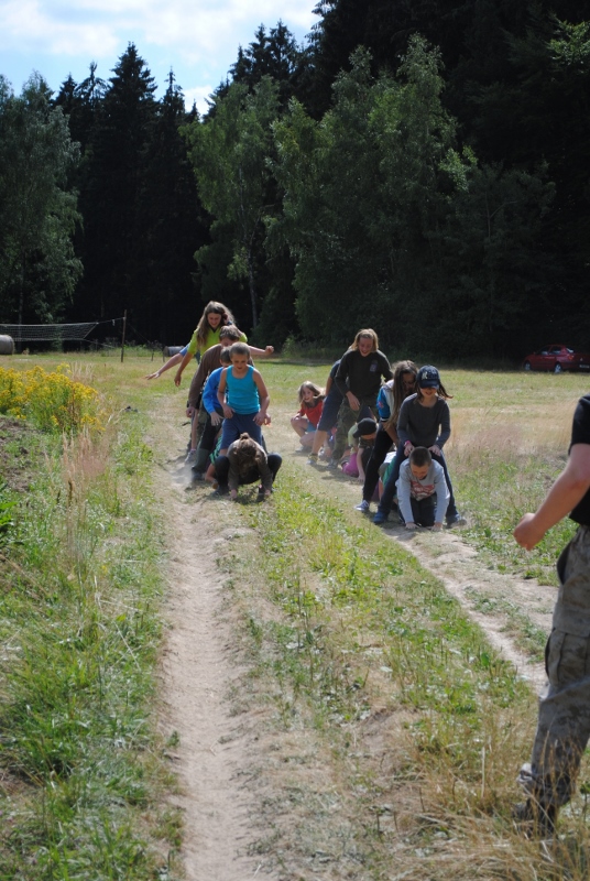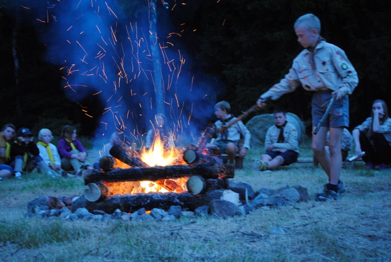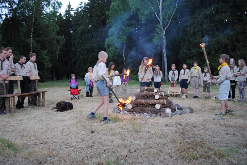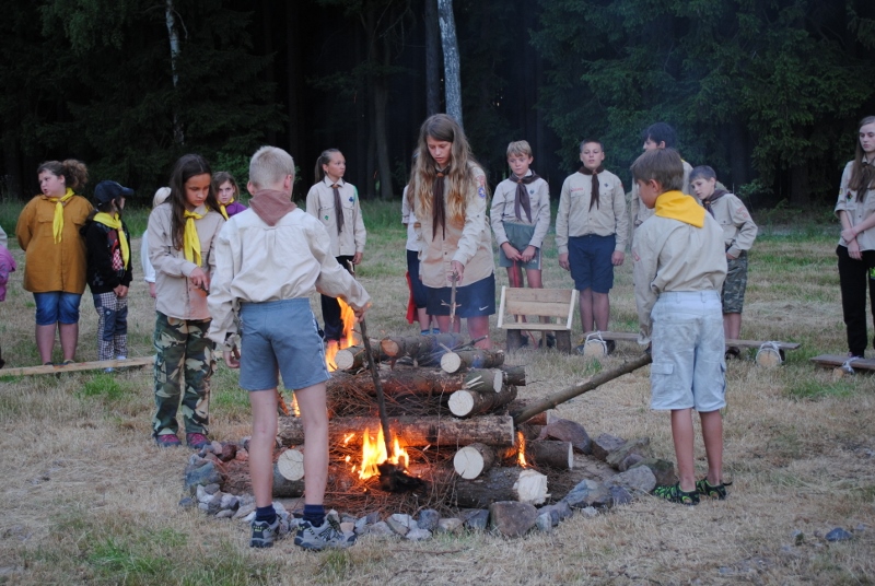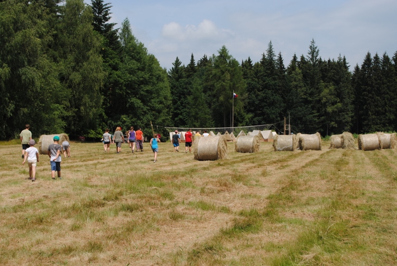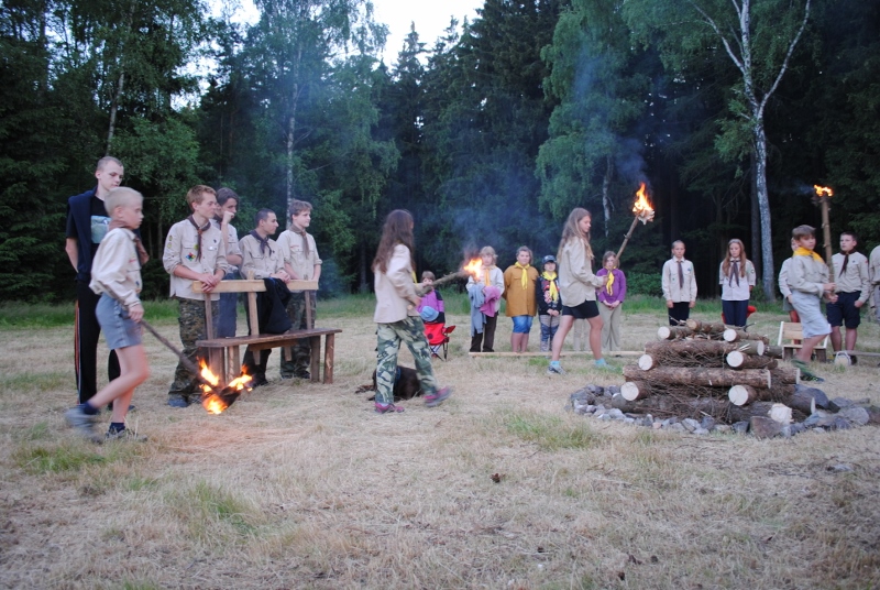 I letos jsme se vydali na naše osvědčené tábořiště Kousky. Tentokrát světlušky a vlčata jely jen na jeden týden tábora, ostatní skauti ,skautky a RS s RG na 14 dní. Jelikož louka Kousky je opředená bohatou historii a sahá až do 16 století i tábor se nesl v tomto duchu. Na louce dříve bývala německá osada jejiž existenci dokazují staré základy budov, studní a prostě všech možných sutin obytných budov v nedaleké blízkosti tábořiště. V Této osadě žil Josef Bokouš, ten patřil do skupiny lapků, kteří okrádali přijíždějící jezdce na koních, hledajících nocleh a odpočinek pro sebe i koně. Bokouš míchal z bylin lektvar, který podal koním a ty po ujetí několika kilometrů přestali jít a upadli do hlubokého spánku. A to byla příležitost pro Bokoušovi kumpány, kteří čekali až koně nebudou moci jít a oni je mohli přepadnout a oloupit. Za tyto činy byl Bokouš odsouzen k trestu oběšení. Rok po jeho popravě osada vyhořela v ní i jeho rodina, nutno podotknouti o Bokoušově rodině nebylo v Kronikách žádné zmínky. Duch Bokouše se jednou za čas objeví a znepříjemňuje pobyt táborníkům naposledy tomu bylo před 17 lety v roce 1998 kdy jeho duše toužila po osvobození. To se tehdejším táborníkům podařilo, ale letos poprosil táborníky, aby zachránili duši jeho syna Jindřicha, který byl upálen v sutinách jejich domu a pykal za hříchy Bokoušovi. Aby duši Jindřicha osvobodili plnili různé jeho rozmary. Nejprve museli táborníci uvařit lektvar z býlí a utkat rohož z trávy, kterou využili v očistném rituálu od sprosté mluvy. Po té každá skupina měla za úkol najít a propíchnout dračí vejce, která v sobě obsahovala infikovanou tekutinu zpropadených duší. Úkolů bylo více, zeptejte se samotných účastníků…….. Ani v samotném závěru tábora jsme se nedozvěděli zda se podařilo duši Jindřicha vysvobodit, kdo ví třeba za rok nás Bokouš opět osloví. Tak příští rok na Kouskách Vaši Vedoucí |