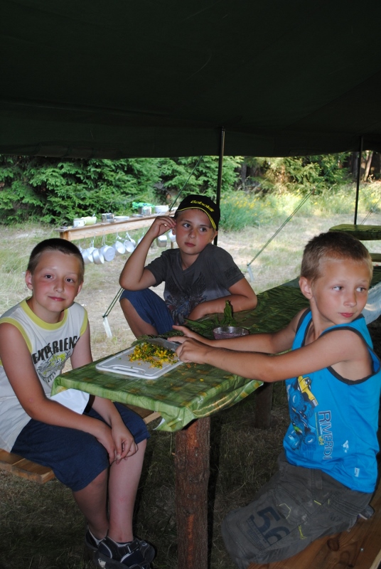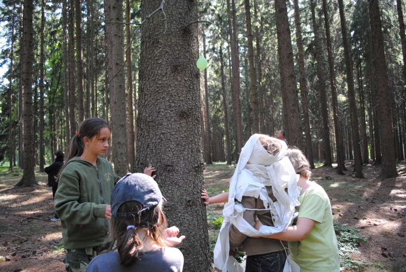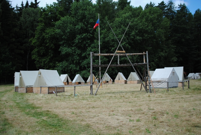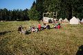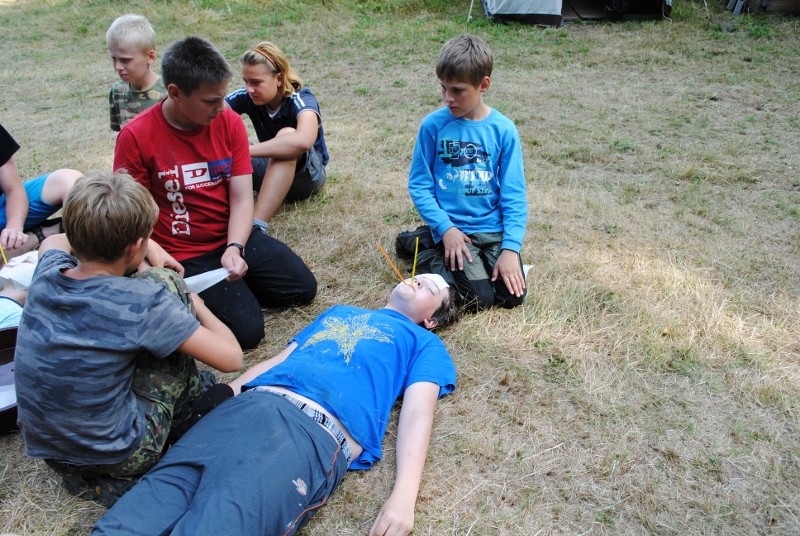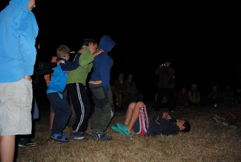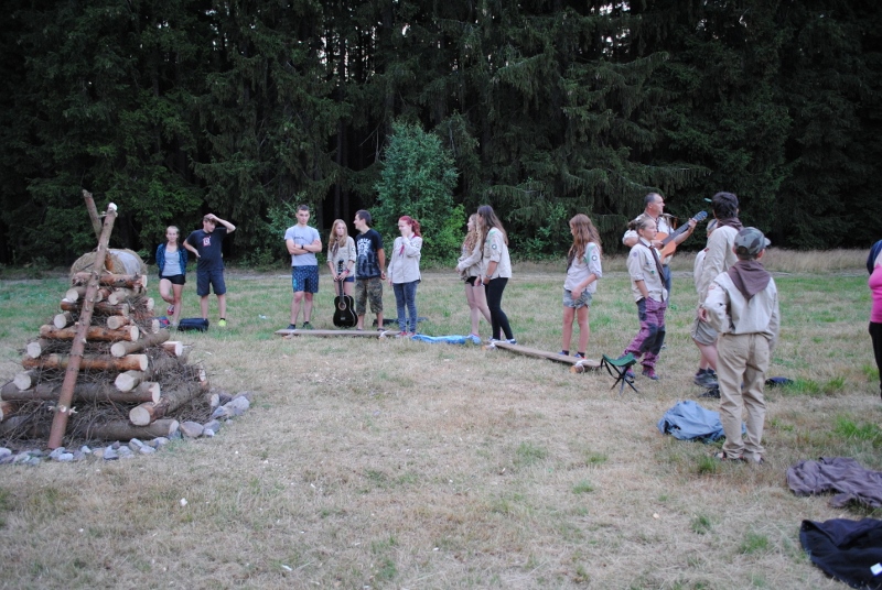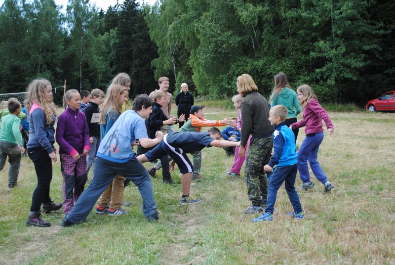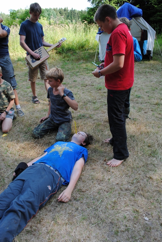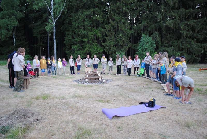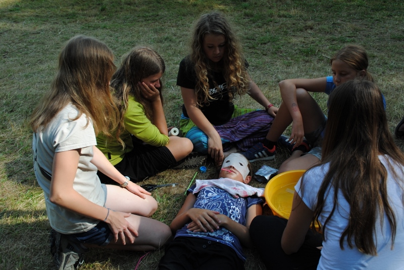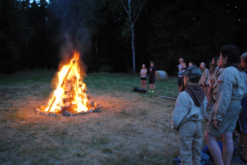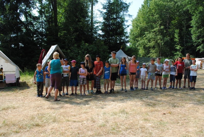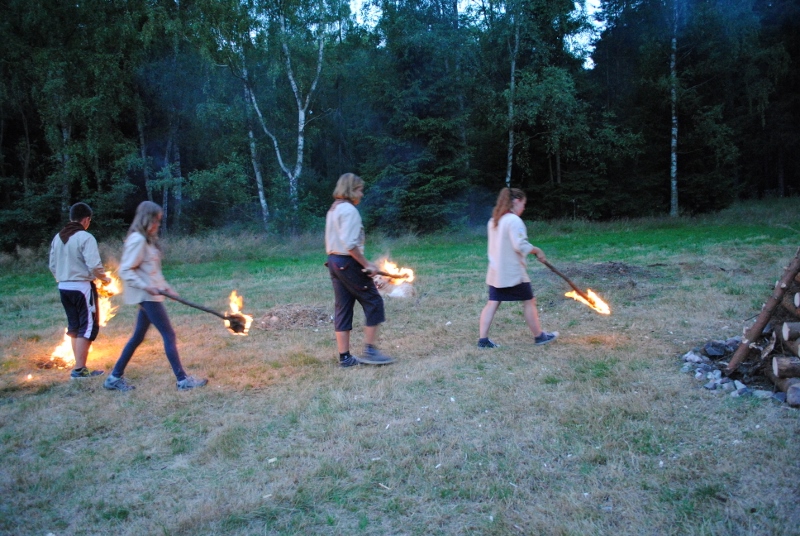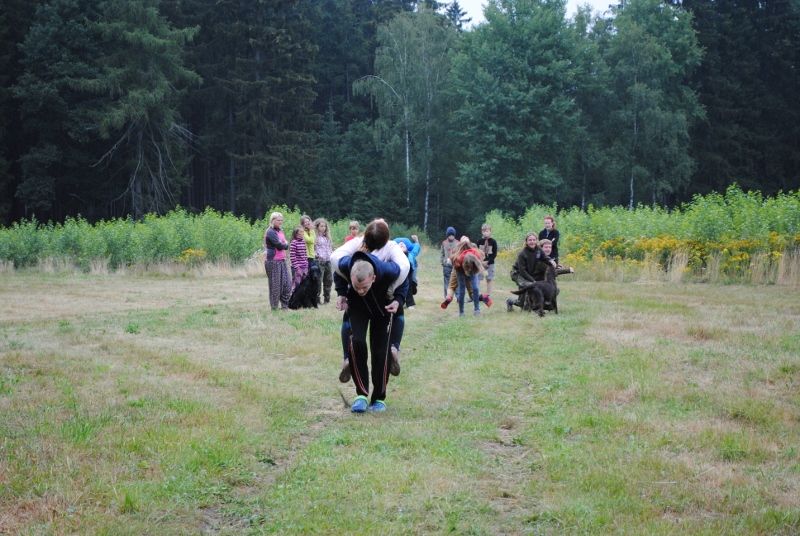 I letos jsme se vydali na naše osvědčené tábořiště Kousky. Tentokrát světlušky a vlčata jely jen na jeden týden tábora, ostatní skauti ,skautky a RS s RG na 14 dní. Jelikož louka Kousky je opředená bohatou historii a sahá až do 16 století i tábor se nesl v tomto duchu. Na louce dříve bývala německá osada jejiž existenci dokazují staré základy budov, studní a prostě všech možných sutin obytných budov v nedaleké blízkosti tábořiště. V Této osadě žil Josef Bokouš, ten patřil do skupiny lapků, kteří okrádali přijíždějící jezdce na koních, hledajících nocleh a odpočinek pro sebe i koně. Bokouš míchal z bylin lektvar, který podal koním a ty po ujetí několika kilometrů přestali jít a upadli do hlubokého spánku. A to byla příležitost pro Bokoušovi kumpány, kteří čekali až koně nebudou moci jít a oni je mohli přepadnout a oloupit. Za tyto činy byl Bokouš odsouzen k trestu oběšení. Rok po jeho popravě osada vyhořela v ní i jeho rodina, nutno podotknouti o Bokoušově rodině nebylo v Kronikách žádné zmínky. Duch Bokouše se jednou za čas objeví a znepříjemňuje pobyt táborníkům naposledy tomu bylo před 17 lety v roce 1998 kdy jeho duše toužila po osvobození. To se tehdejším táborníkům podařilo, ale letos poprosil táborníky, aby zachránili duši jeho syna Jindřicha, který byl upálen v sutinách jejich domu a pykal za hříchy Bokoušovi. Aby duši Jindřicha osvobodili plnili různé jeho rozmary. Nejprve museli táborníci uvařit lektvar z býlí a utkat rohož z trávy, kterou využili v očistném rituálu od sprosté mluvy. Po té každá skupina měla za úkol najít a propíchnout dračí vejce, která v sobě obsahovala infikovanou tekutinu zpropadených duší. Úkolů bylo více, zeptejte se samotných účastníků…….. Ani v samotném závěru tábora jsme se nedozvěděli zda se podařilo duši Jindřicha vysvobodit, kdo ví třeba za rok nás Bokouš opět osloví. Tak příští rok na Kouskách Vaši Vedoucí |