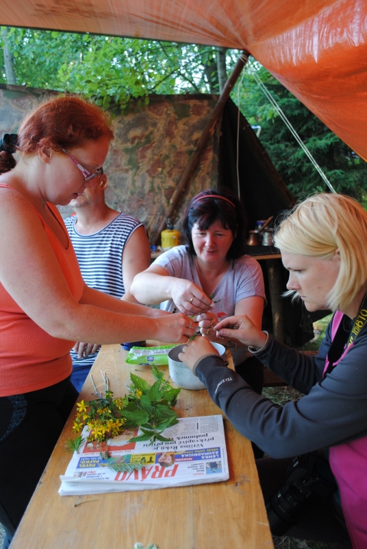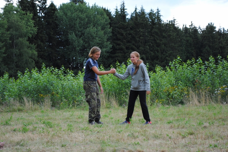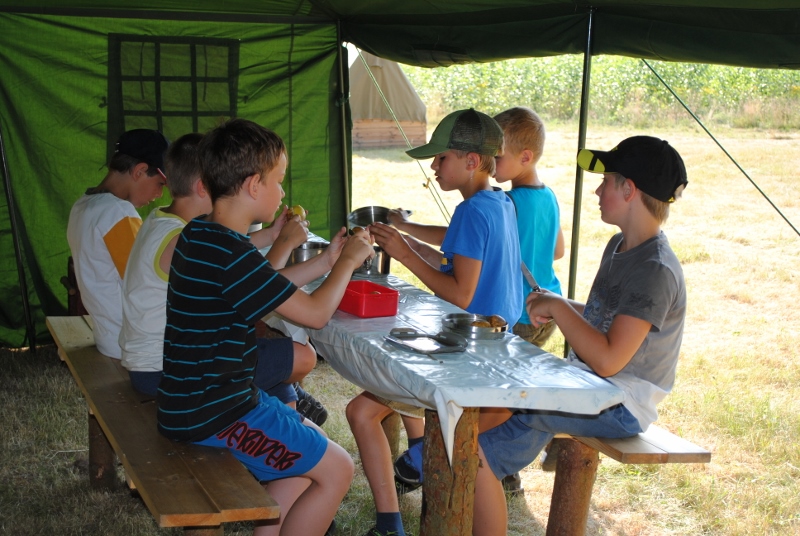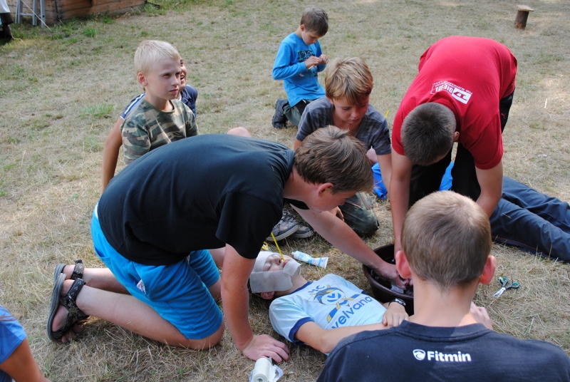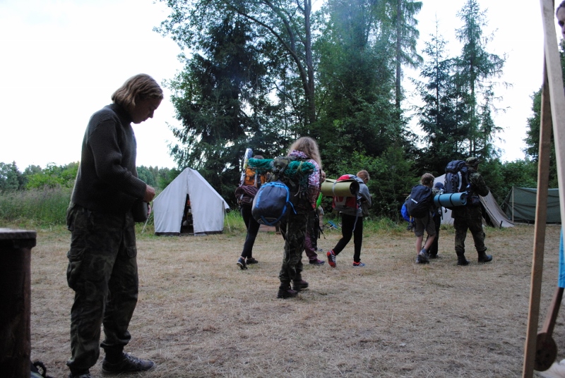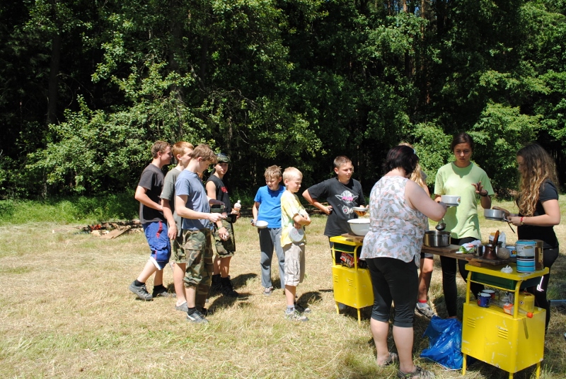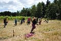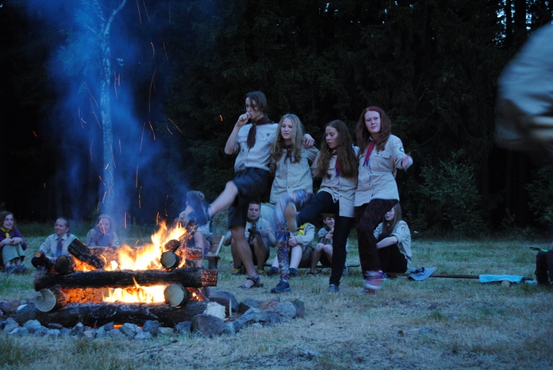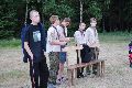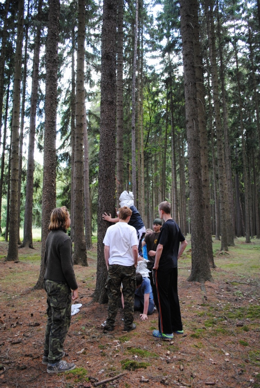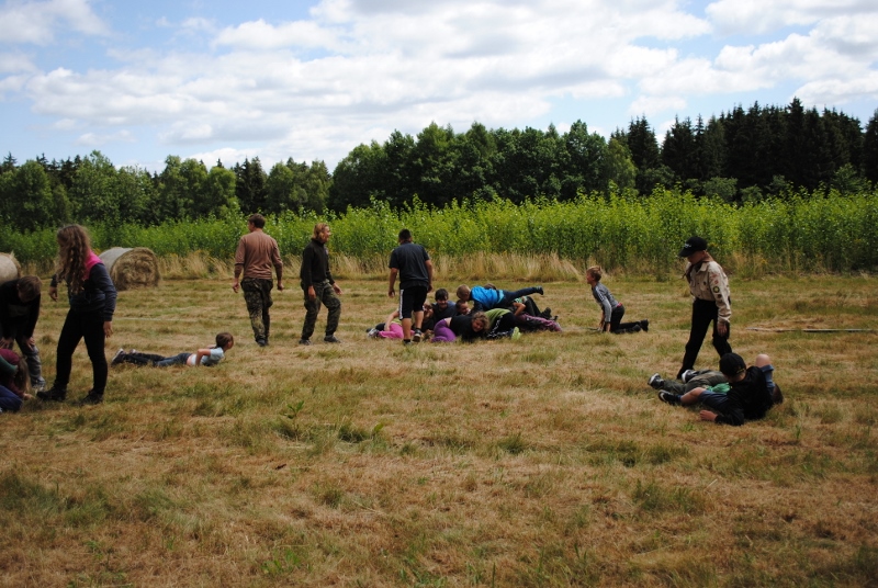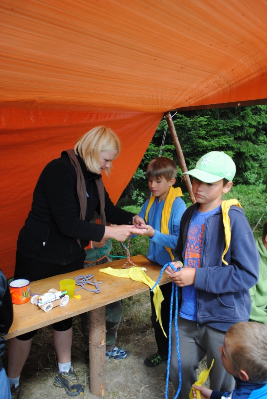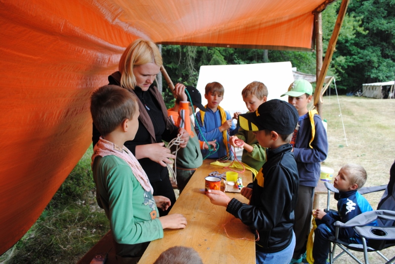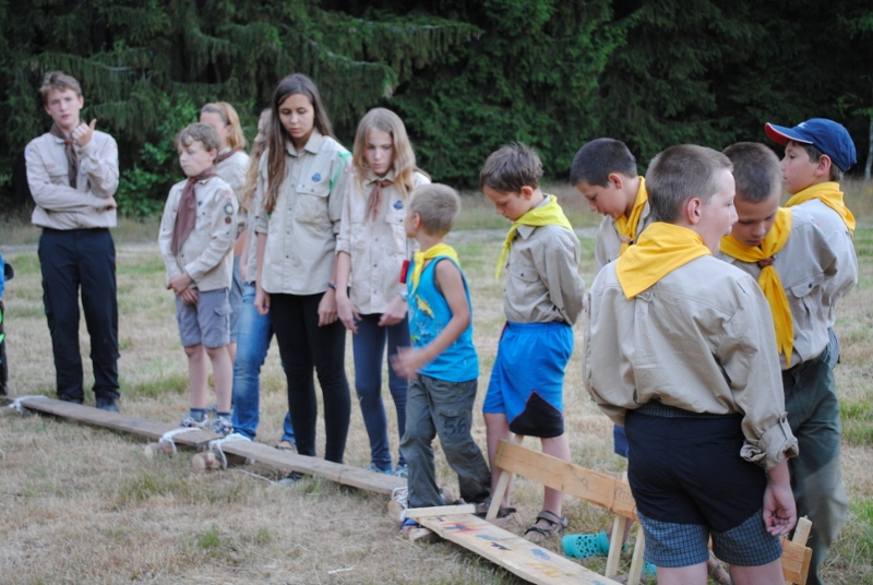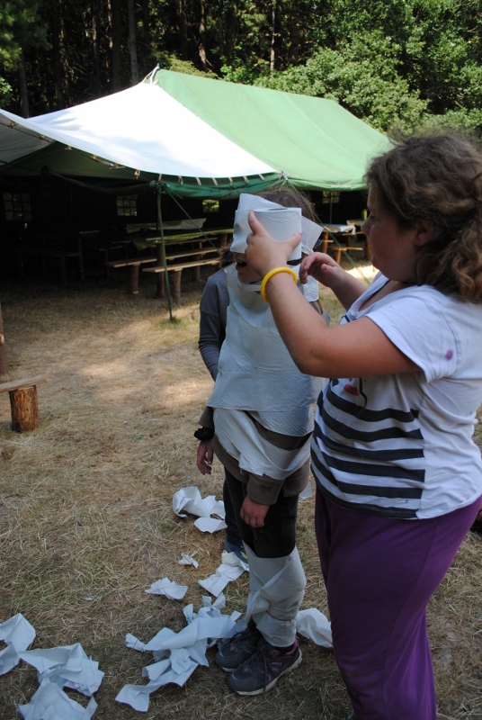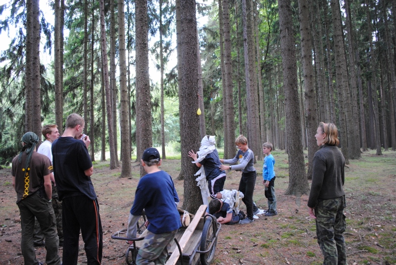 I letos jsme se vydali na naše osvědčené tábořiště Kousky. Tentokrát světlušky a vlčata jely jen na jeden týden tábora, ostatní skauti ,skautky a RS s RG na 14 dní. Jelikož louka Kousky je opředená bohatou historii a sahá až do 16 století i tábor se nesl v tomto duchu. Na louce dříve bývala německá osada jejiž existenci dokazují staré základy budov, studní a prostě všech možných sutin obytných budov v nedaleké blízkosti tábořiště. V Této osadě žil Josef Bokouš, ten patřil do skupiny lapků, kteří okrádali přijíždějící jezdce na koních, hledajících nocleh a odpočinek pro sebe i koně. Bokouš míchal z bylin lektvar, který podal koním a ty po ujetí několika kilometrů přestali jít a upadli do hlubokého spánku. A to byla příležitost pro Bokoušovi kumpány, kteří čekali až koně nebudou moci jít a oni je mohli přepadnout a oloupit. Za tyto činy byl Bokouš odsouzen k trestu oběšení. Rok po jeho popravě osada vyhořela v ní i jeho rodina, nutno podotknouti o Bokoušově rodině nebylo v Kronikách žádné zmínky. Duch Bokouše se jednou za čas objeví a znepříjemňuje pobyt táborníkům naposledy tomu bylo před 17 lety v roce 1998 kdy jeho duše toužila po osvobození. To se tehdejším táborníkům podařilo, ale letos poprosil táborníky, aby zachránili duši jeho syna Jindřicha, který byl upálen v sutinách jejich domu a pykal za hříchy Bokoušovi. Aby duši Jindřicha osvobodili plnili různé jeho rozmary. Nejprve museli táborníci uvařit lektvar z býlí a utkat rohož z trávy, kterou využili v očistném rituálu od sprosté mluvy. Po té každá skupina měla za úkol najít a propíchnout dračí vejce, která v sobě obsahovala infikovanou tekutinu zpropadených duší. Úkolů bylo více, zeptejte se samotných účastníků…….. Ani v samotném závěru tábora jsme se nedozvěděli zda se podařilo duši Jindřicha vysvobodit, kdo ví třeba za rok nás Bokouš opět osloví. Tak příští rok na Kouskách Vaši Vedoucí |