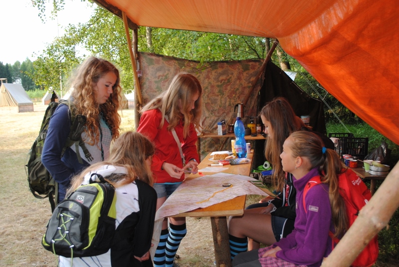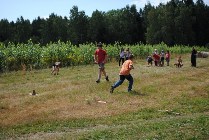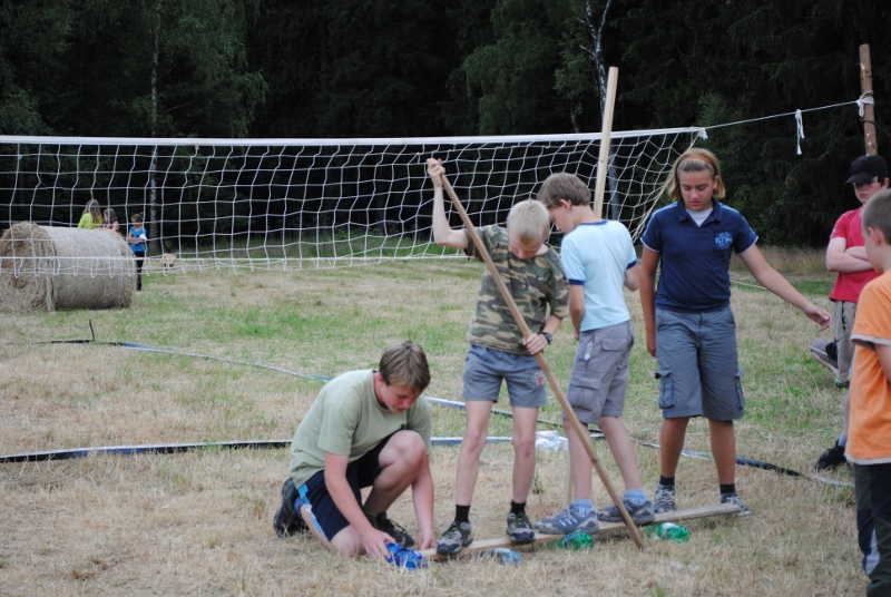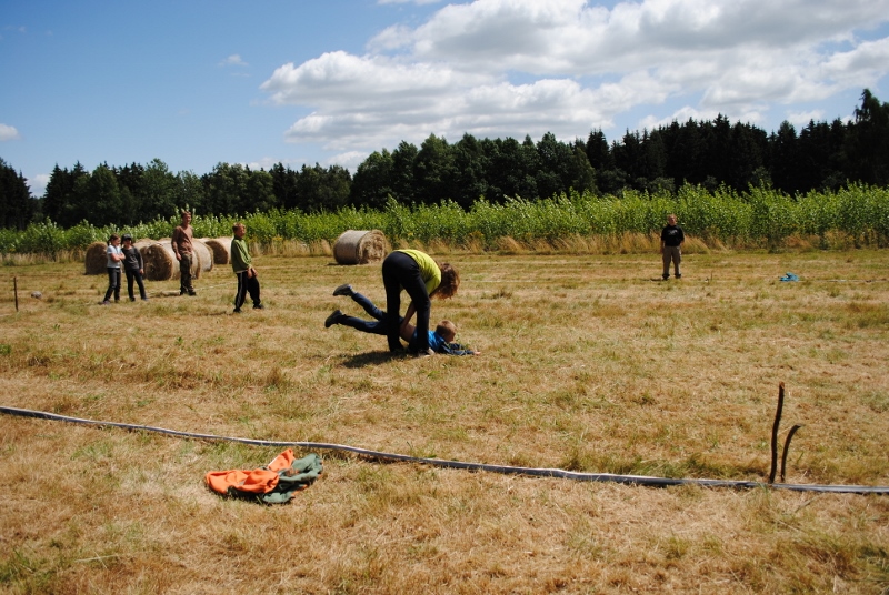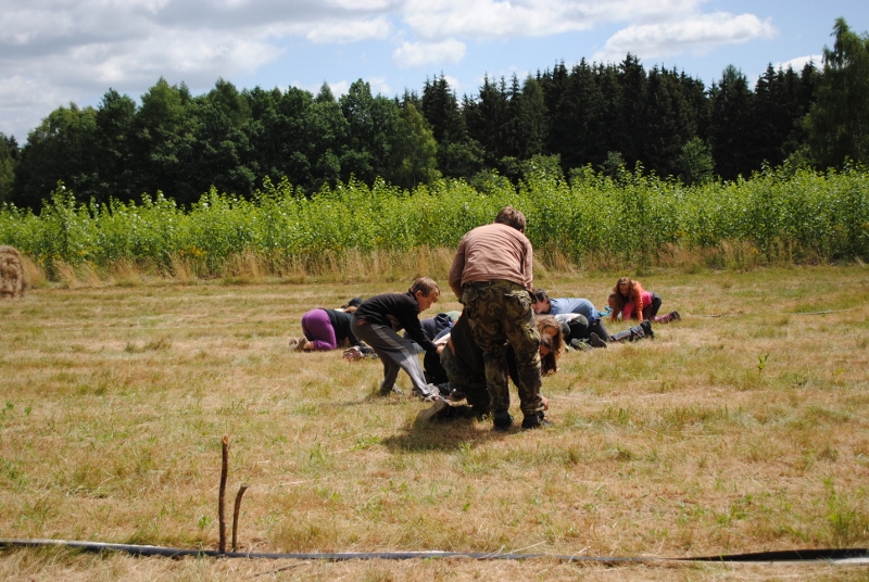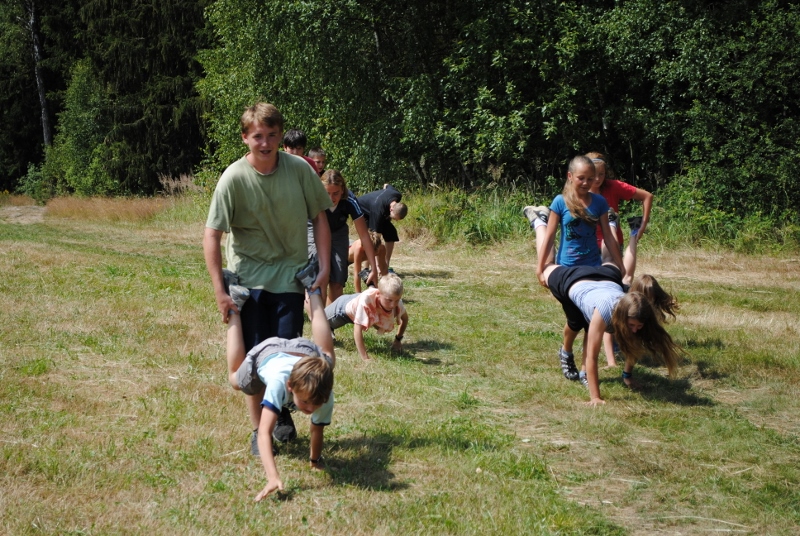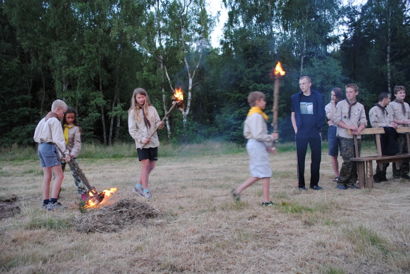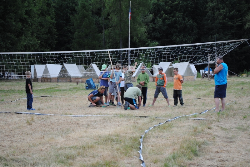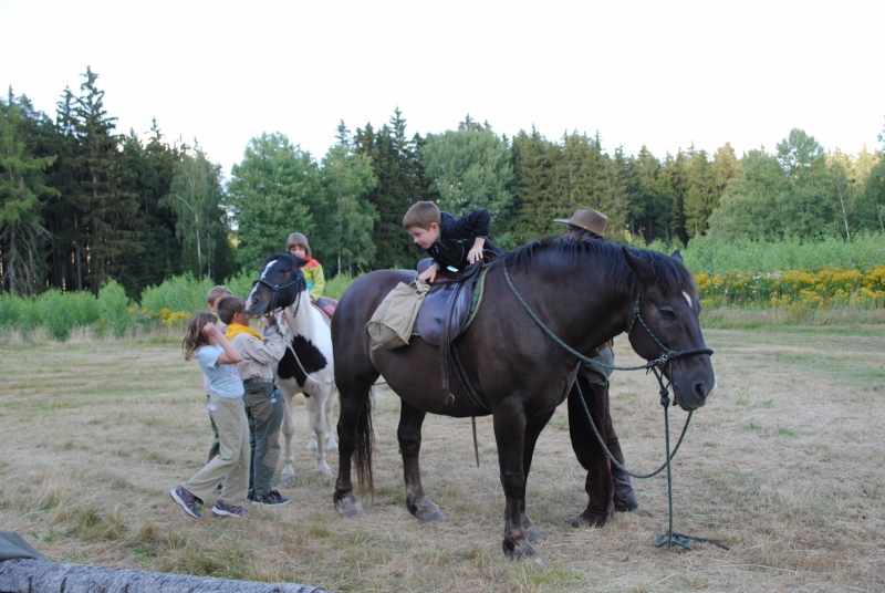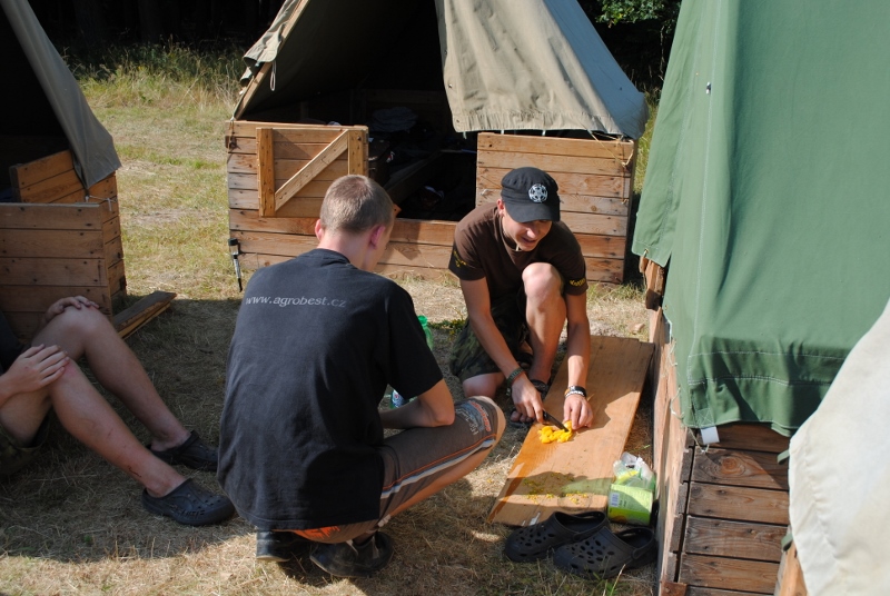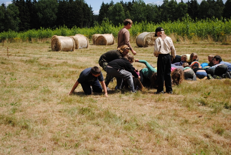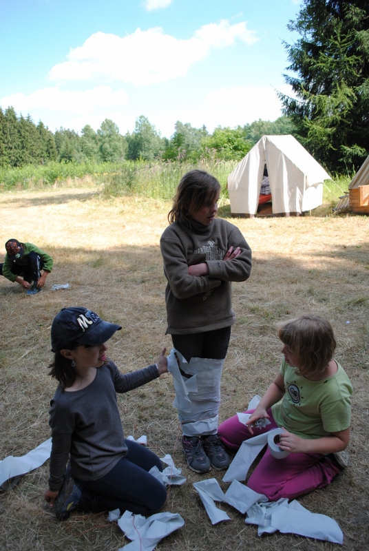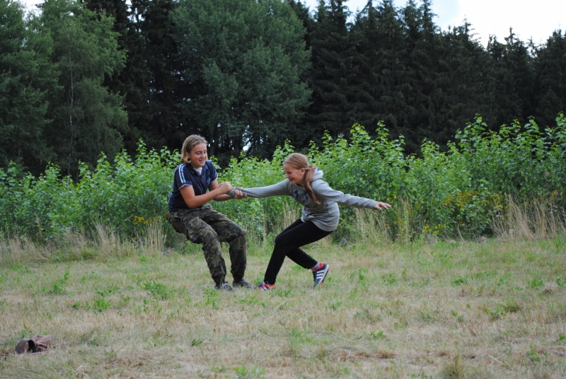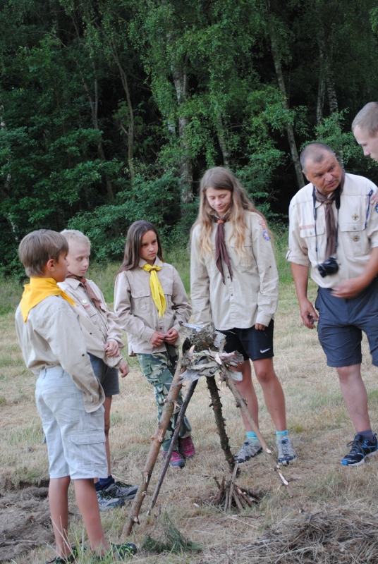 I letos jsme se vydali na naše osvědčené tábořiště Kousky. Tentokrát světlušky a vlčata jely jen na jeden týden tábora, ostatní skauti ,skautky a RS s RG na 14 dní. Jelikož louka Kousky je opředená bohatou historii a sahá až do 16 století i tábor se nesl v tomto duchu. Na louce dříve bývala německá osada jejiž existenci dokazují staré základy budov, studní a prostě všech možných sutin obytných budov v nedaleké blízkosti tábořiště. V Této osadě žil Josef Bokouš, ten patřil do skupiny lapků, kteří okrádali přijíždějící jezdce na koních, hledajících nocleh a odpočinek pro sebe i koně. Bokouš míchal z bylin lektvar, který podal koním a ty po ujetí několika kilometrů přestali jít a upadli do hlubokého spánku. A to byla příležitost pro Bokoušovi kumpány, kteří čekali až koně nebudou moci jít a oni je mohli přepadnout a oloupit. Za tyto činy byl Bokouš odsouzen k trestu oběšení. Rok po jeho popravě osada vyhořela v ní i jeho rodina, nutno podotknouti o Bokoušově rodině nebylo v Kronikách žádné zmínky. Duch Bokouše se jednou za čas objeví a znepříjemňuje pobyt táborníkům naposledy tomu bylo před 17 lety v roce 1998 kdy jeho duše toužila po osvobození. To se tehdejším táborníkům podařilo, ale letos poprosil táborníky, aby zachránili duši jeho syna Jindřicha, který byl upálen v sutinách jejich domu a pykal za hříchy Bokoušovi. Aby duši Jindřicha osvobodili plnili různé jeho rozmary. Nejprve museli táborníci uvařit lektvar z býlí a utkat rohož z trávy, kterou využili v očistném rituálu od sprosté mluvy. Po té každá skupina měla za úkol najít a propíchnout dračí vejce, která v sobě obsahovala infikovanou tekutinu zpropadených duší. Úkolů bylo více, zeptejte se samotných účastníků…….. Ani v samotném závěru tábora jsme se nedozvěděli zda se podařilo duši Jindřicha vysvobodit, kdo ví třeba za rok nás Bokouš opět osloví. Tak příští rok na Kouskách Vaši Vedoucí |