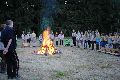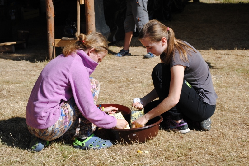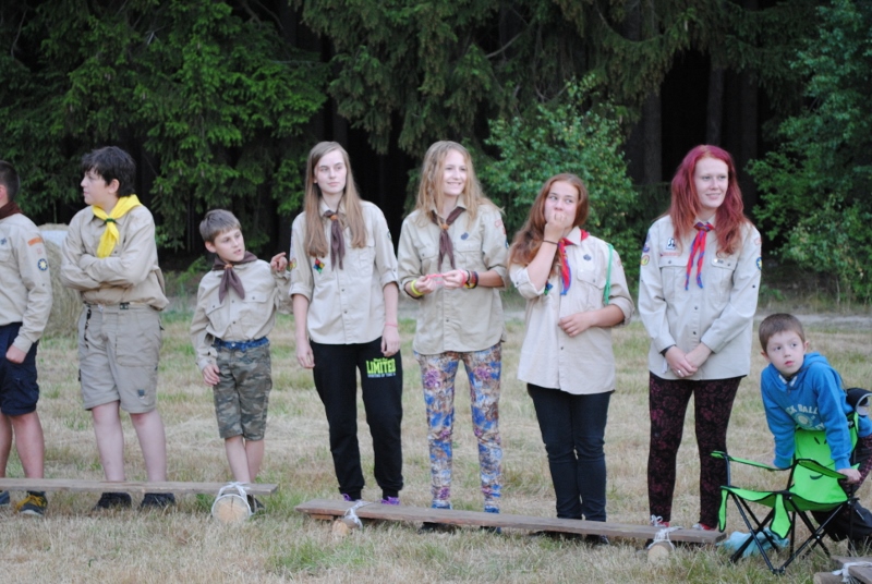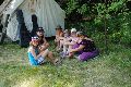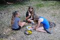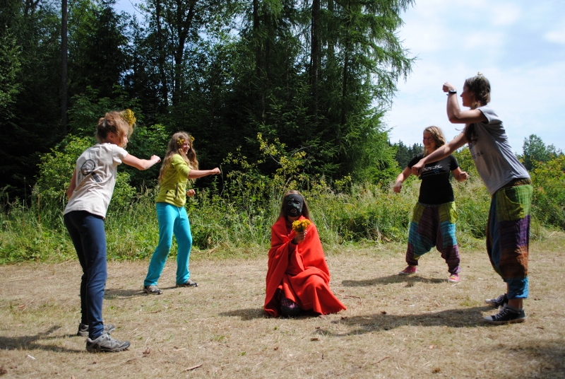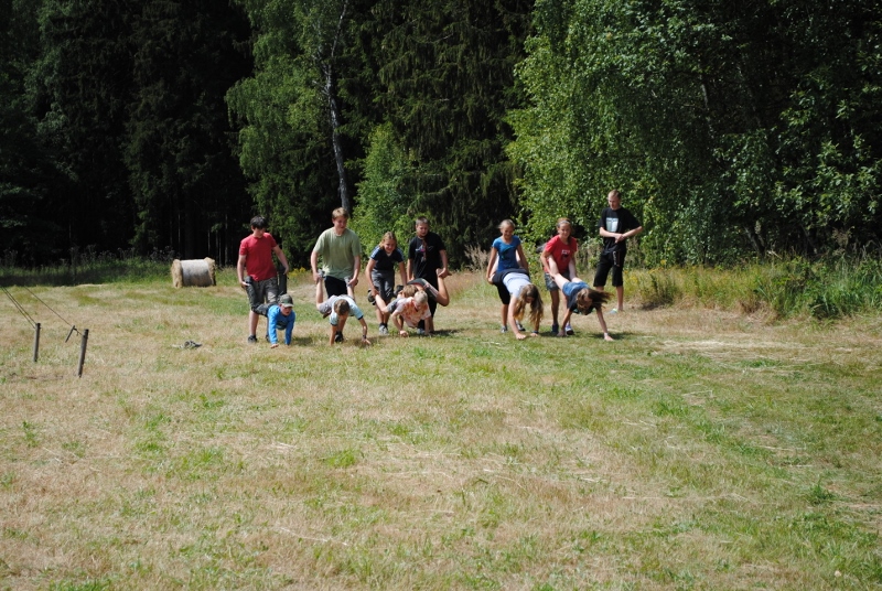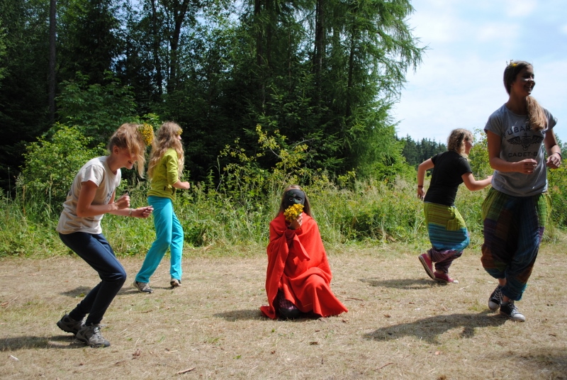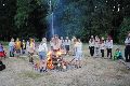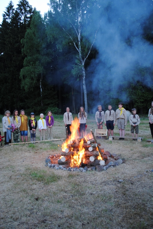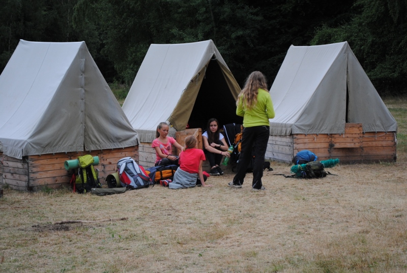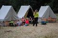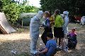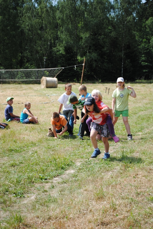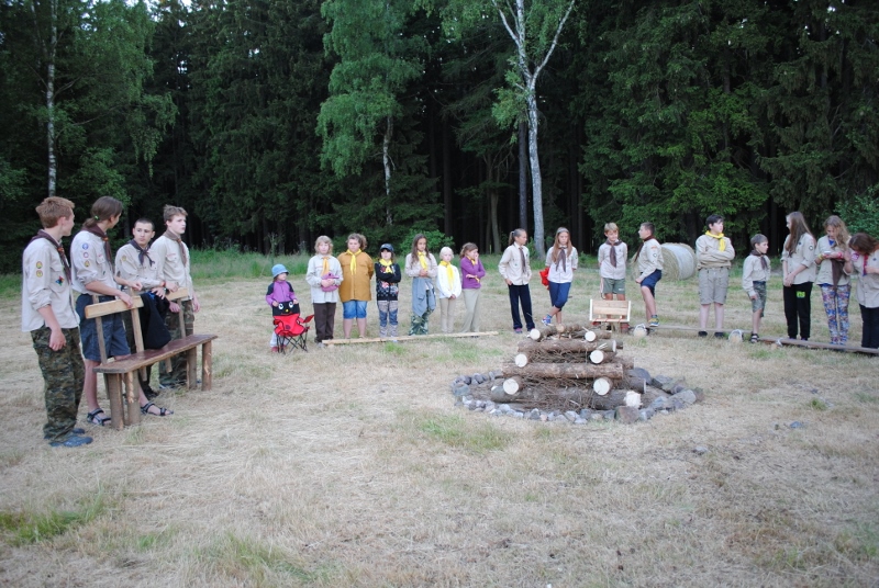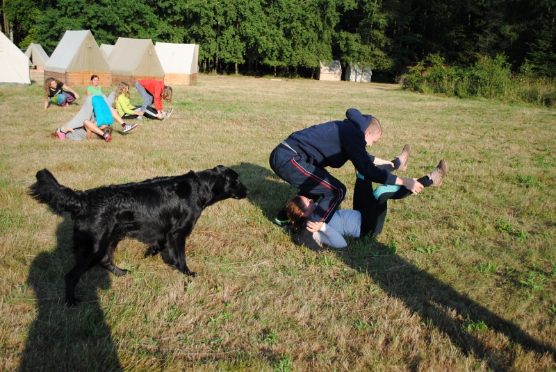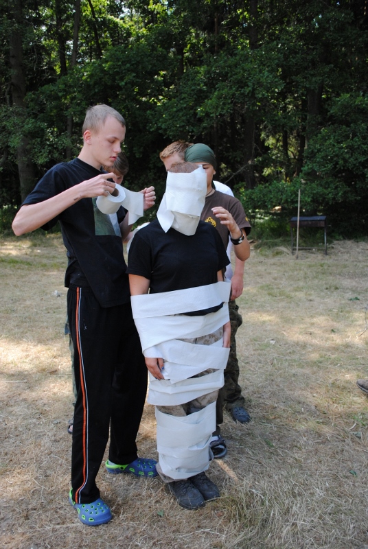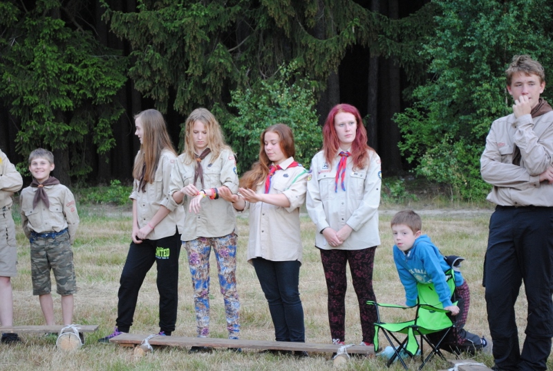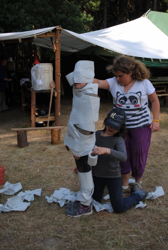 I letos jsme se vydali na naše osvědčené tábořiště Kousky. Tentokrát světlušky a vlčata jely jen na jeden týden tábora, ostatní skauti ,skautky a RS s RG na 14 dní. Jelikož louka Kousky je opředená bohatou historii a sahá až do 16 století i tábor se nesl v tomto duchu. Na louce dříve bývala německá osada jejiž existenci dokazují staré základy budov, studní a prostě všech možných sutin obytných budov v nedaleké blízkosti tábořiště. V Této osadě žil Josef Bokouš, ten patřil do skupiny lapků, kteří okrádali přijíždějící jezdce na koních, hledajících nocleh a odpočinek pro sebe i koně. Bokouš míchal z bylin lektvar, který podal koním a ty po ujetí několika kilometrů přestali jít a upadli do hlubokého spánku. A to byla příležitost pro Bokoušovi kumpány, kteří čekali až koně nebudou moci jít a oni je mohli přepadnout a oloupit. Za tyto činy byl Bokouš odsouzen k trestu oběšení. Rok po jeho popravě osada vyhořela v ní i jeho rodina, nutno podotknouti o Bokoušově rodině nebylo v Kronikách žádné zmínky. Duch Bokouše se jednou za čas objeví a znepříjemňuje pobyt táborníkům naposledy tomu bylo před 17 lety v roce 1998 kdy jeho duše toužila po osvobození. To se tehdejším táborníkům podařilo, ale letos poprosil táborníky, aby zachránili duši jeho syna Jindřicha, který byl upálen v sutinách jejich domu a pykal za hříchy Bokoušovi. Aby duši Jindřicha osvobodili plnili různé jeho rozmary. Nejprve museli táborníci uvařit lektvar z býlí a utkat rohož z trávy, kterou využili v očistném rituálu od sprosté mluvy. Po té každá skupina měla za úkol najít a propíchnout dračí vejce, která v sobě obsahovala infikovanou tekutinu zpropadených duší. Úkolů bylo více, zeptejte se samotných účastníků…….. Ani v samotném závěru tábora jsme se nedozvěděli zda se podařilo duši Jindřicha vysvobodit, kdo ví třeba za rok nás Bokouš opět osloví. Tak příští rok na Kouskách Vaši Vedoucí |