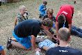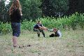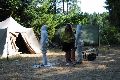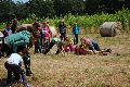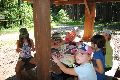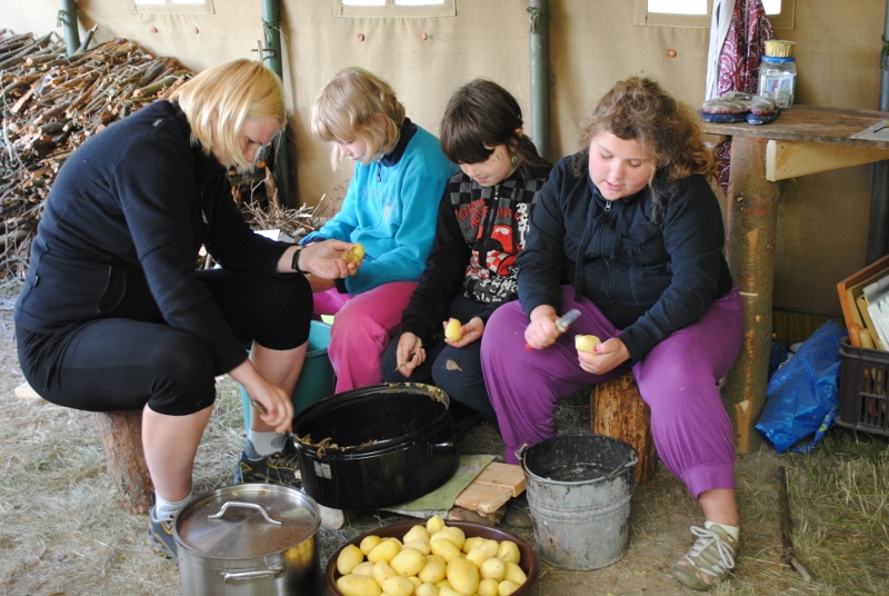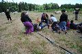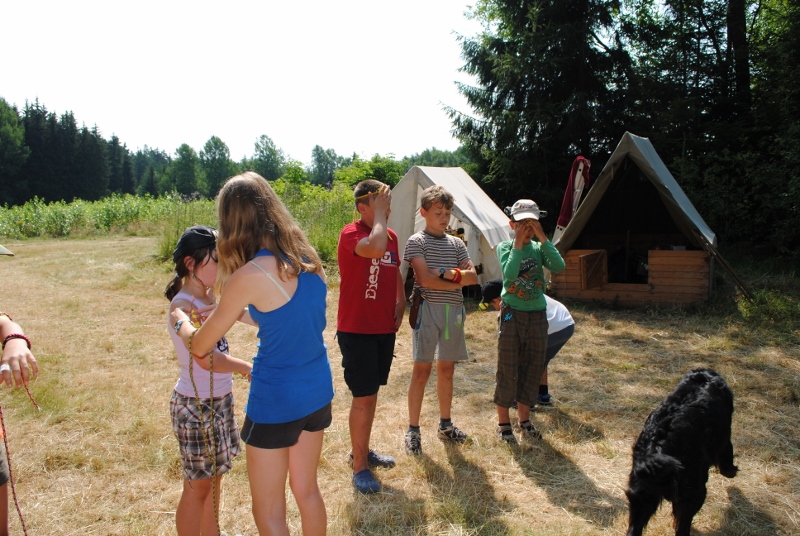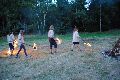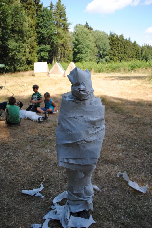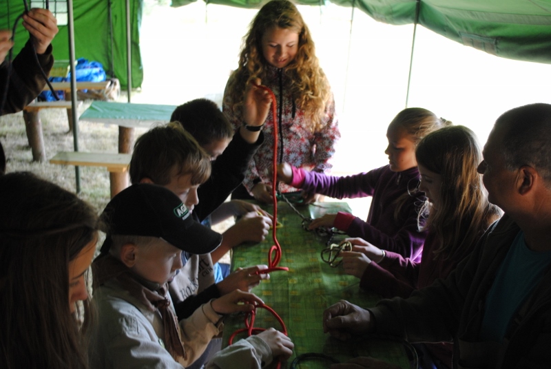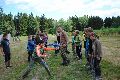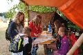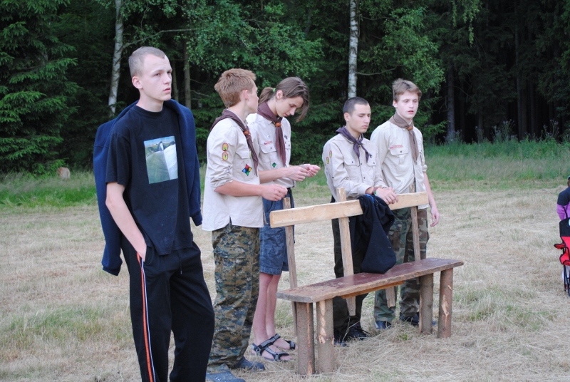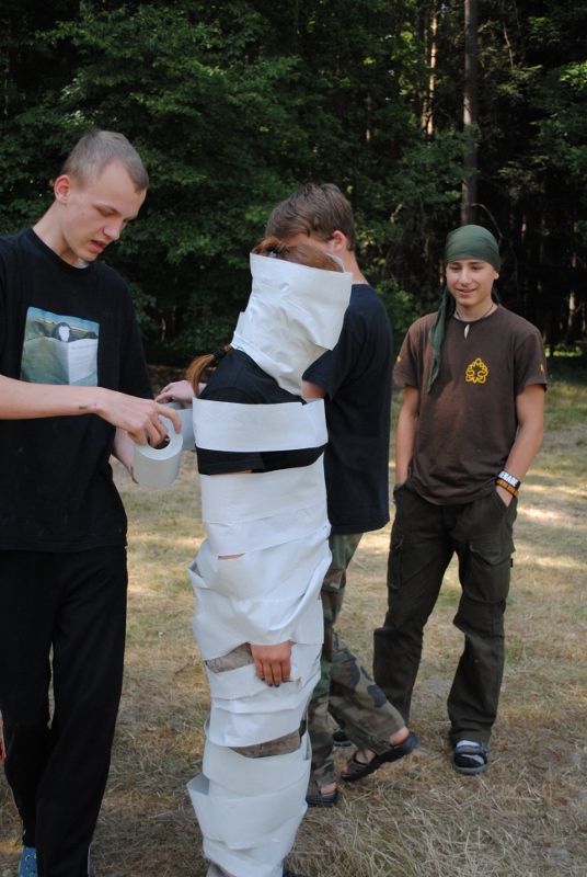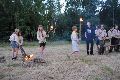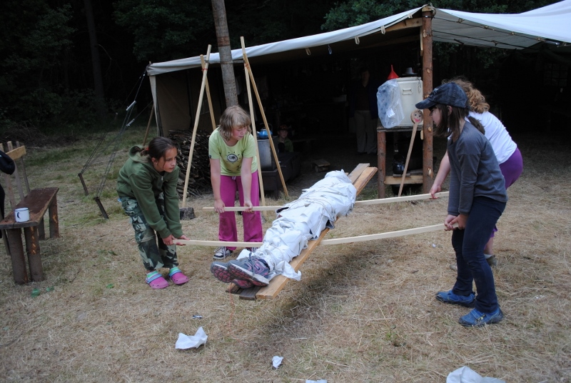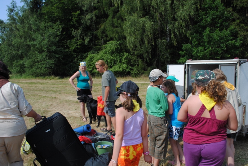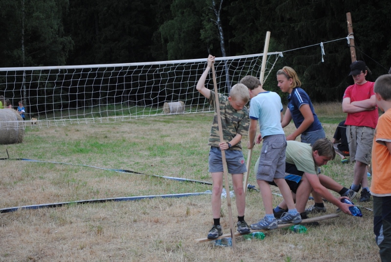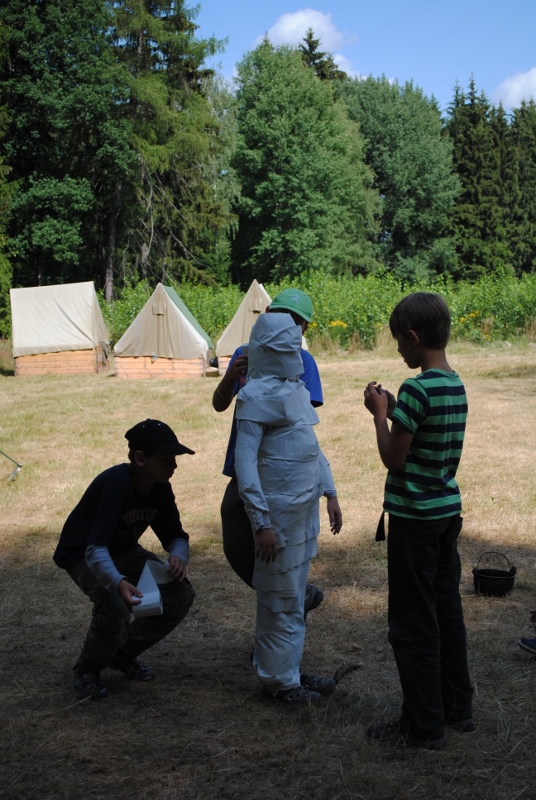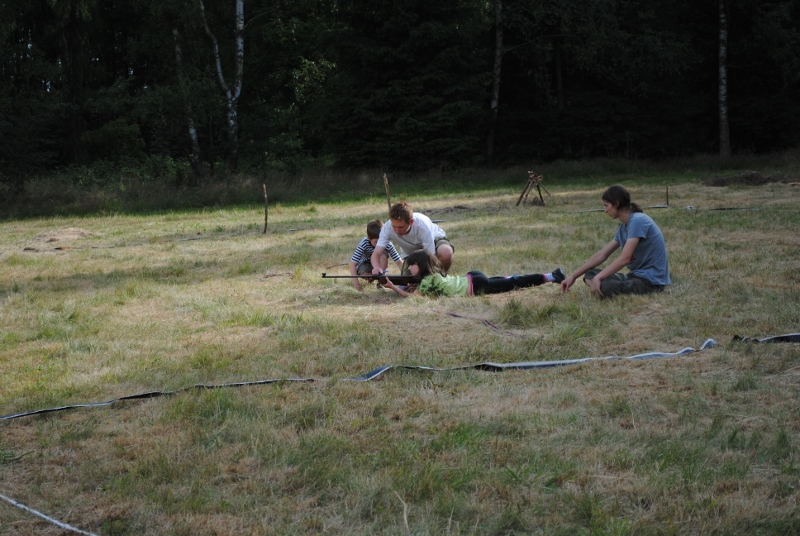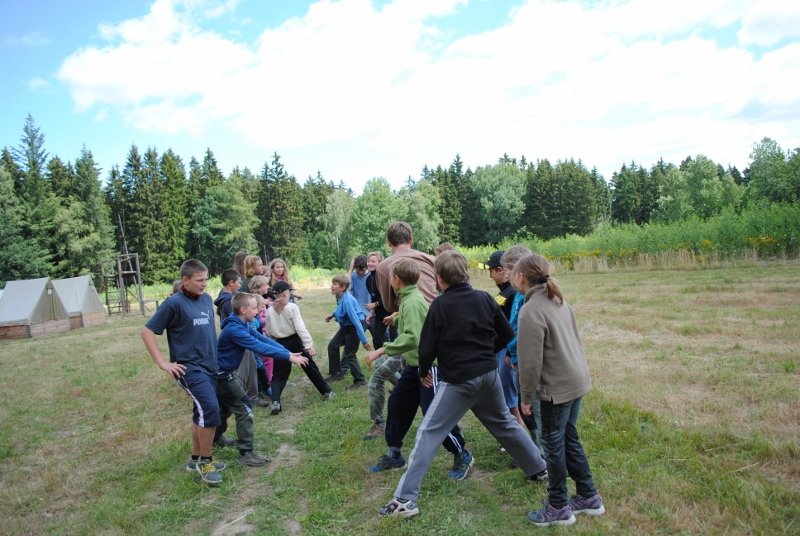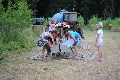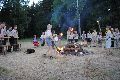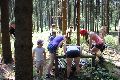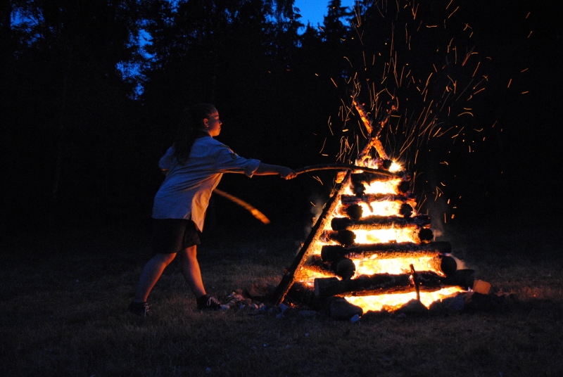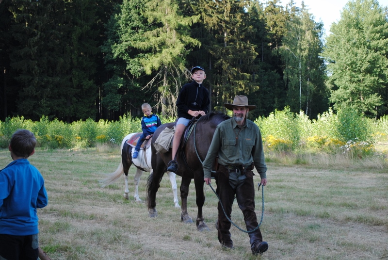 I letos jsme se vydali na naše osvědčené tábořiště Kousky. Tentokrát světlušky a vlčata jely jen na jeden týden tábora, ostatní skauti ,skautky a RS s RG na 14 dní. Jelikož louka Kousky je opředená bohatou historii a sahá až do 16 století i tábor se nesl v tomto duchu. Na louce dříve bývala německá osada jejiž existenci dokazují staré základy budov, studní a prostě všech možných sutin obytných budov v nedaleké blízkosti tábořiště. V Této osadě žil Josef Bokouš, ten patřil do skupiny lapků, kteří okrádali přijíždějící jezdce na koních, hledajících nocleh a odpočinek pro sebe i koně. Bokouš míchal z bylin lektvar, který podal koním a ty po ujetí několika kilometrů přestali jít a upadli do hlubokého spánku. A to byla příležitost pro Bokoušovi kumpány, kteří čekali až koně nebudou moci jít a oni je mohli přepadnout a oloupit. Za tyto činy byl Bokouš odsouzen k trestu oběšení. Rok po jeho popravě osada vyhořela v ní i jeho rodina, nutno podotknouti o Bokoušově rodině nebylo v Kronikách žádné zmínky. Duch Bokouše se jednou za čas objeví a znepříjemňuje pobyt táborníkům naposledy tomu bylo před 17 lety v roce 1998 kdy jeho duše toužila po osvobození. To se tehdejším táborníkům podařilo, ale letos poprosil táborníky, aby zachránili duši jeho syna Jindřicha, který byl upálen v sutinách jejich domu a pykal za hříchy Bokoušovi. Aby duši Jindřicha osvobodili plnili různé jeho rozmary. Nejprve museli táborníci uvařit lektvar z býlí a utkat rohož z trávy, kterou využili v očistném rituálu od sprosté mluvy. Po té každá skupina měla za úkol najít a propíchnout dračí vejce, která v sobě obsahovala infikovanou tekutinu zpropadených duší. Úkolů bylo více, zeptejte se samotných účastníků…….. Ani v samotném závěru tábora jsme se nedozvěděli zda se podařilo duši Jindřicha vysvobodit, kdo ví třeba za rok nás Bokouš opět osloví. Tak příští rok na Kouskách Vaši Vedoucí |